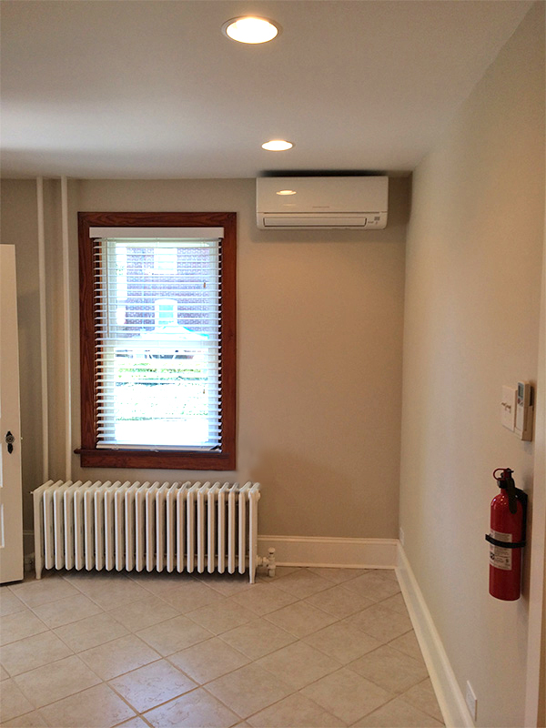 Large attic space with Mitsubishi air conditioning and gas radiator heat